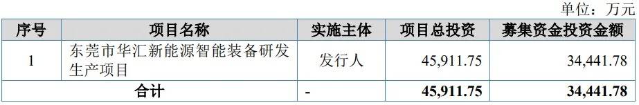 据招股书披露,华汇智能本次拟向不特定合格投资者公开发行股票不超过17000020股(未考虑超额配售选择权的情况下),或不超过19550023股(全额行使本次股票发行的超额配售选择权的情况),拟于北交所上市,保荐机构为国泰海通证券。企业本次募集资金投资金额34441.78万元,主要用于东莞市华汇新能源智能装备研发生产项目。南都N视频记者注意到,募集资金较此前申报稿减少1.15亿元。